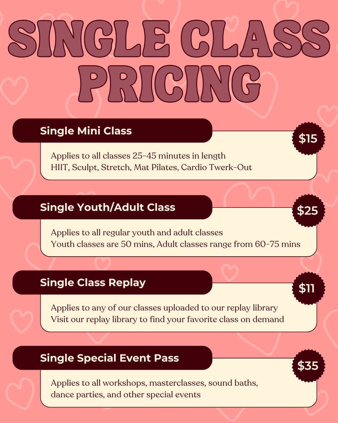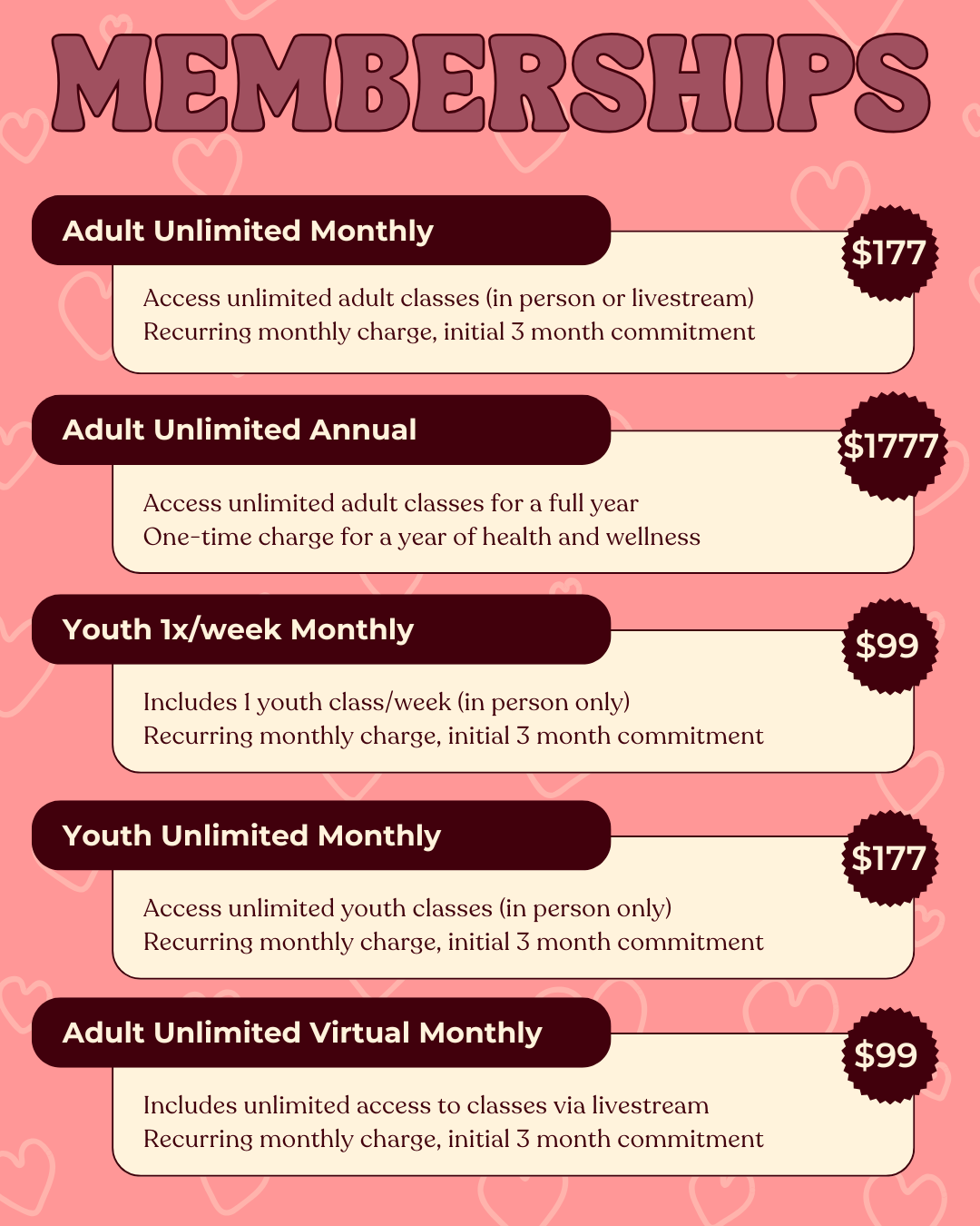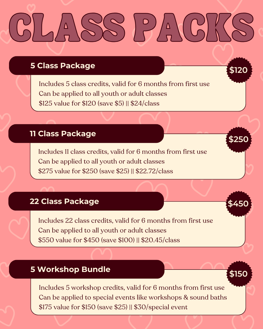 Youth & Adult New Client Specials are listed separately- please be sure to select the appropriate pass.